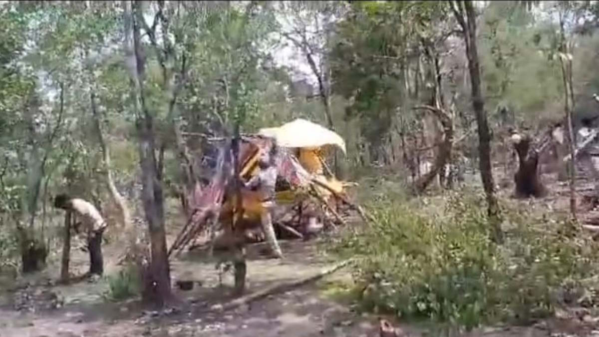 महासमुंद: जंगल में पेड़ काटकर झोपड़ी बनाकर रह रहे आदिवासी किसान सैनिकों को वन अमले ने पकड़ने के बाद समझाइश…
