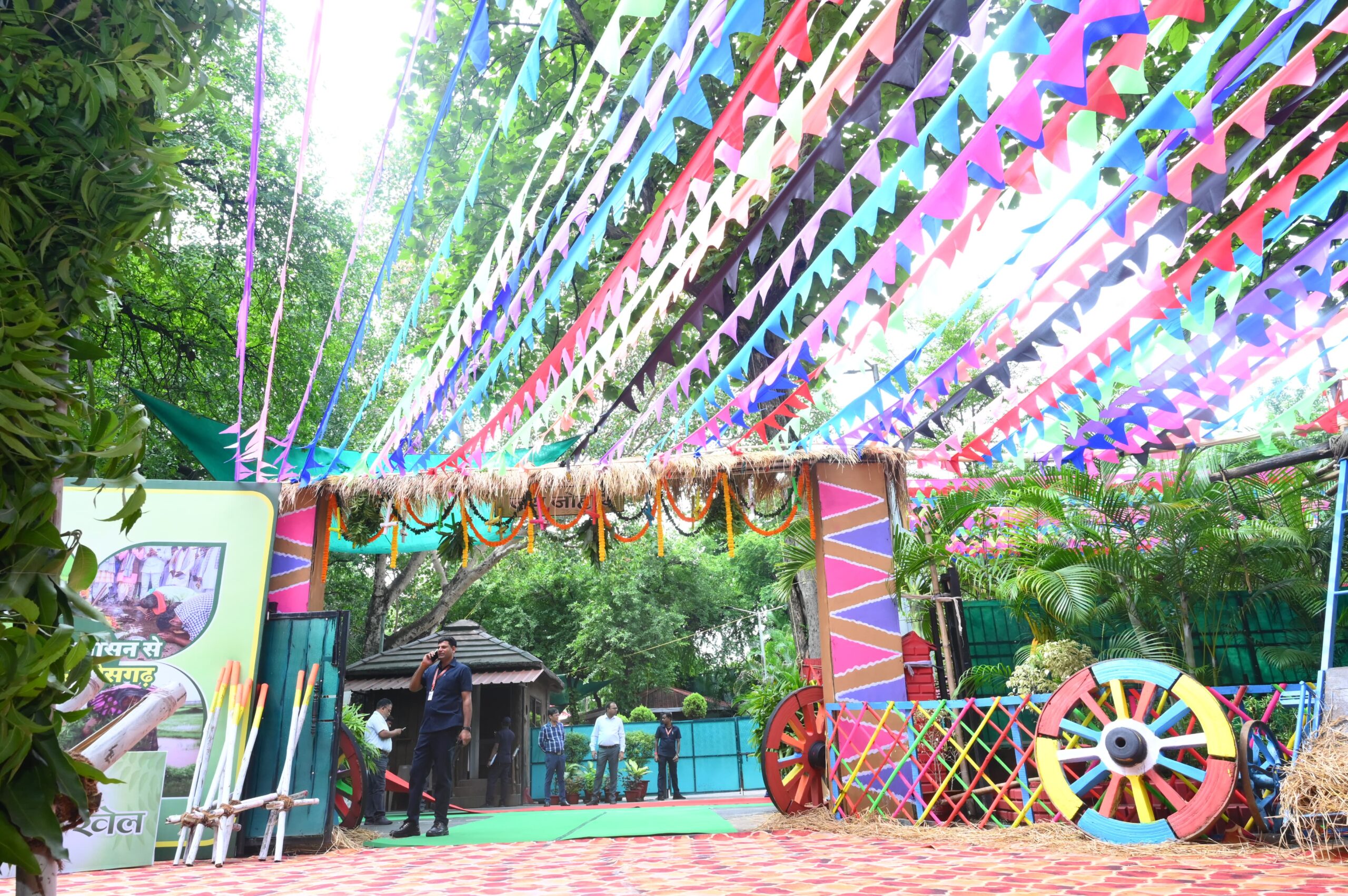 सरगुजिहा कला पर केंद्रित सजावट में बस्तर और मैदानी छत्तीसगढ़ की भी सुंदर झलक सावन झूला, गेड़ी नृत्य और कृषि…