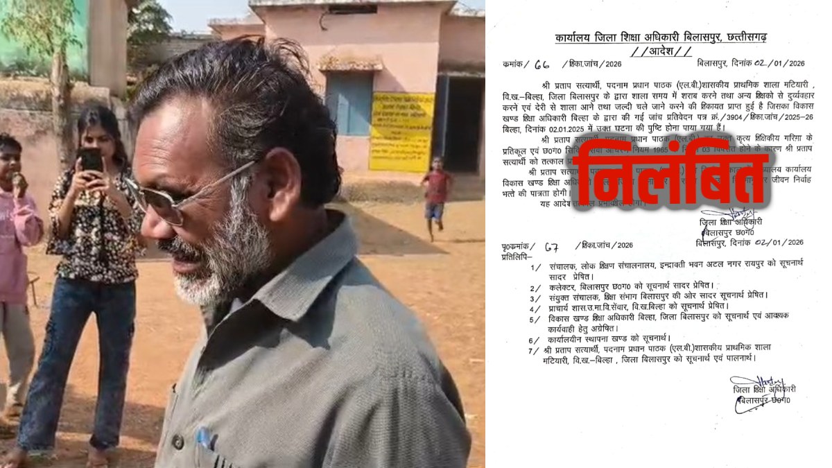 बिलासपुर। जिले में शिक्षा विभाग ने कड़ा कदम उठाते हुए एक प्रधान पाठक को तत्काल प्रभाव से निलंबित कर दिया…