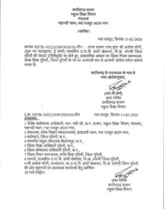 रायपुर। छत्तीसगढ़ शासन के स्कूल शिक्षा विभाग द्वारा हाल ही में जारी एक आदेश ने प्रशासनिक कार्यशैली पर गंभीर सवाल खड़े कर दिए हैं। महानदी भवन, नवा रायपुर से जारी आदेश में अशोक कुमार कश्यप को समग्र शिक्षा मुंगेली के जिला मिशन समन्वयक (डीएमसी) के पद से प्रतिनियुक्ति समाप्त कर शासकीय उच्चतर माध्यमिक विद्यालय टेमरी, जिला मुंगेली में अस्थायी रूप से भेजा गया है।