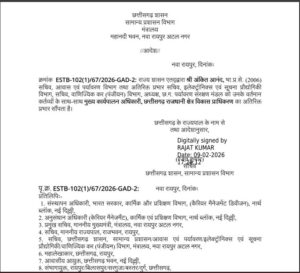 रायपुर। छत्तीसगढ़ शासन ने प्रशासनिक फेरबदल करते हुए 2006 बैच के भारतीय प्रशासनिक सेवा अधिकारी (आईएएस) अंकित आनंद को छत्तीसगढ़ राजधानी क्षेत्र विकास प्राधिकरण (एससीआर) के मुख्य कार्यपालन अधिकारी का अतिरिक्त प्रभार सौंपा है। अंकित आनंद वर्तमान में सचिव, आवास एवं पर्यावरण विभाग, अतिरिक्त प्रभार सचिव, इलेक्ट्रॉनिक्स एवं सूचना प्रौद्योगिकी विभाग, तथा सचिव, वाणिज्यिक कर (पंजीयन) विभाग के पद पर पदस्थ हैं। इसके अतिरिक्त वे अध्यक्ष, छत्तीसगढ़ पर्यावरण संरक्षण मंडल के दायित्वों का भी निर्वहन कर रहे हैं।