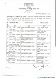 श्वेता श्रीवास्तव सिन्हा को पुलिस अधीक्षक रेल रायपुर से हटाकर पुलिस अधीक्षक, रायपुर ग्रामीण बनाया गया है। वहीं इंदु अग्रवाल (IPS-2022), नगर पुलिस अधीक्षक आजाद चौक रायपुर को पुलिस सहायक आयुक्त, आजाद चौक, रायपुर नगरीय पदस्थ किया गया है।