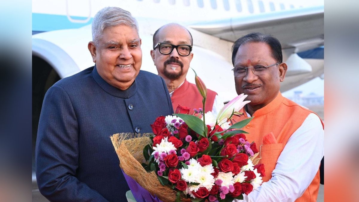 उपराष्ट्रपति धनखड़ का विमानतल पर उपमुख्यमंत्री अरुण साव, केन्द्रीय आवास एवं शहरी विकास राज्य मंत्री तोखन साहू, विधायक सर्वसुनील सोनी, मोतीलाल लाल साहू, पुरंदर मिश्रा, अनुज शर्मा, गुरु खुशवंत साहेब ने भी स्वागत किया.