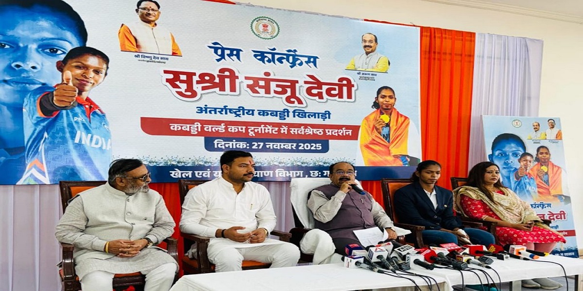 रायपुर : छत्तीसगढ़ की उभरती कबड्डी स्टार संजू देवी ने बांग्लादेश में 17 से 24 नवंबर 2025 तक आयोजित 2nd Women Kabaddi World Cup में शानदार प्रदर्शन करते हुए भारत को स्वर्ण पदक दिलाया. इसी उपलब्धि के बाद आज उपमुख्यमंत्री अरुण साव ने उनके साथ संयुक्त प्रेस कॉन्फ्रेंस कर राज्य में खुशी और गर्व व्यक्त किया.
